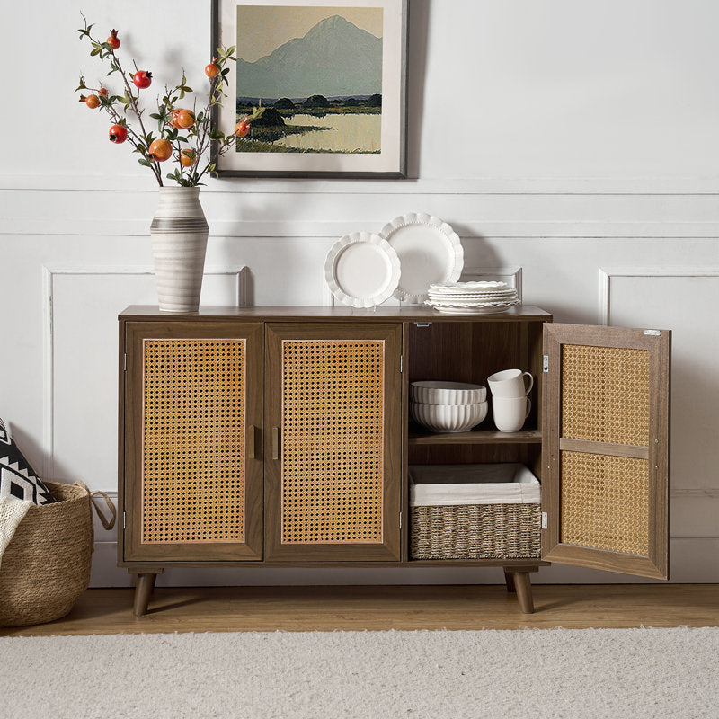 Introducing the Emily Sideboard! Made of solid wood and adorned with natural rattan, this piece is a playful addition to any room. Show off your quirky side with this unique sideboard that brings both style and function. Don't miss out on this one-of-a-kind piece!